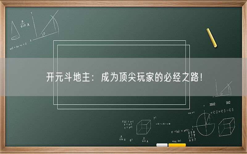 开元斗地主:成为顶尖玩家的必经之路!